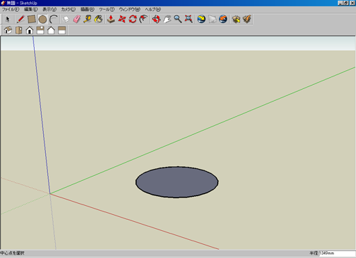 D メニューバーの[ツール]の中にある[フォローミー]を選択し、上側の円をクリックする