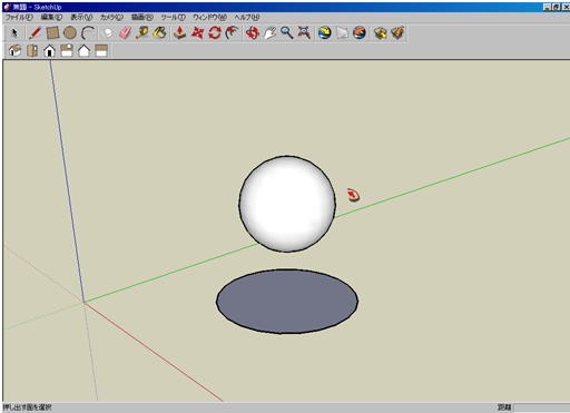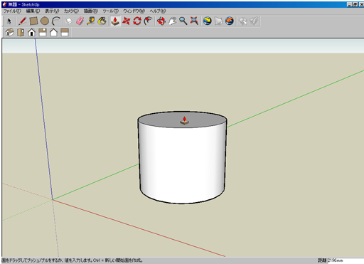 C ツールバーから[プッシュ/プル]ツールを選択し、カーソルを円に合わせると網点表示となるのでクリック