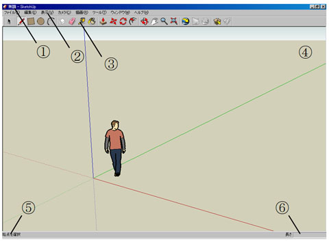 Google SketchUp(以下SketchUp)によるモデリングは、透視投影図(または平行投影図)一つの画面で行います。