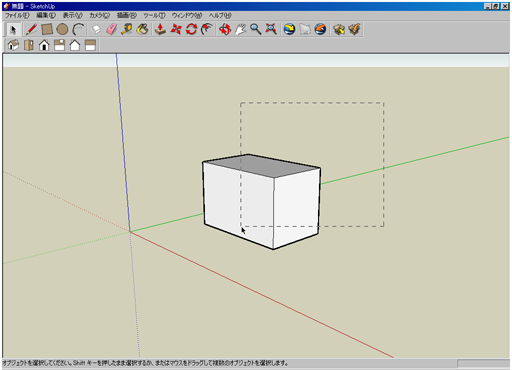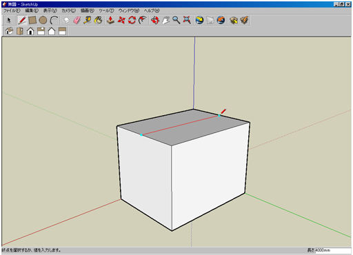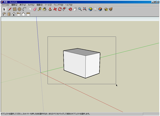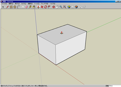 @ [長方形]ツールと[プル/プッシュ]ツールを使い適当な大きさの直方体を作成しておく(3-1参照)