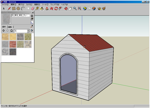 [ペイント]ツールを選択し、表示されたマテリアルブラウザの選択タブから好みの材質を指定して面をクリック