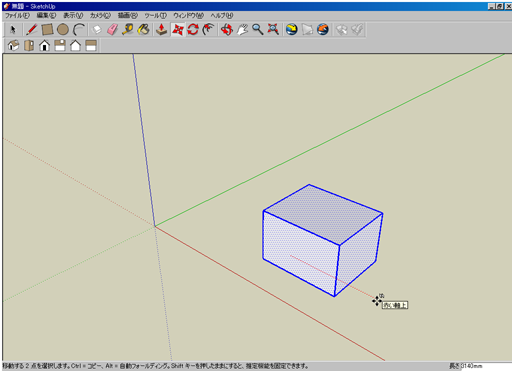 ※ 移動中にカーソルキーを押せば、赤軸(→)、青軸(↑または↓)、緑軸(←)方向への移動に拘束することができる
