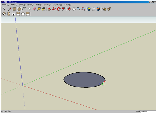 B カーソルを移動して任意の半径でクリック。正確な円を描くときは中心をクリックした後、値制御ボックスに半径を入力してEnterキーを押す