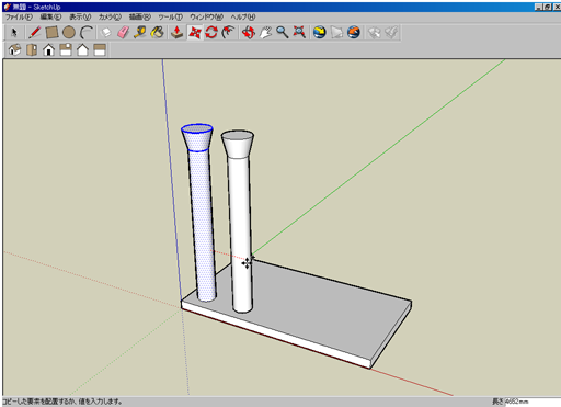 C [プッシュ/プル]ツールを使って、円柱の上面を2m引き上げて柱頭を作成する。引き上げる際はCtrlキーを一度押してコピーモード(カーソル横に+が表示される)にしておく